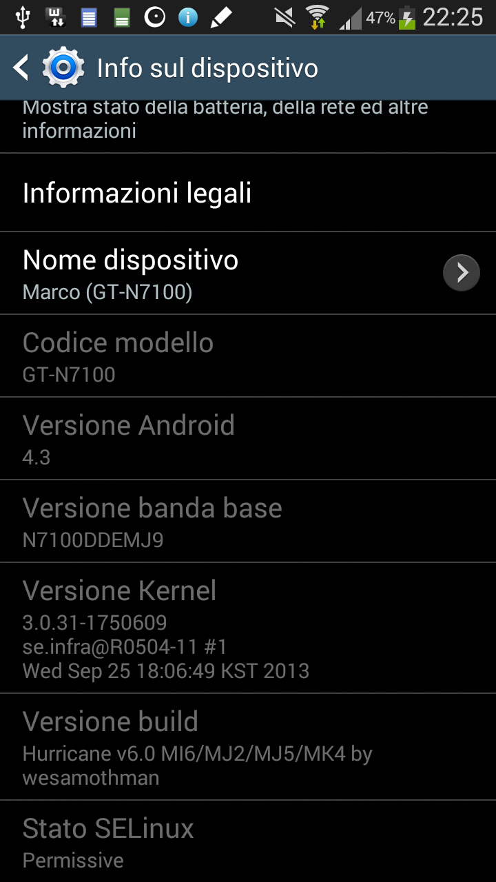 So I decided to get back to a TouchWiz Rom (TouchWiz is the Samsung Version of Android). After some search on the net (and on the xda-developer forum) I found the ROM to test: Hurricane Note 2 Rom This rom bring Android 4.3 on your Note 2 and, with another little mod, you can also add most of the Galaxy Note 3 features!!